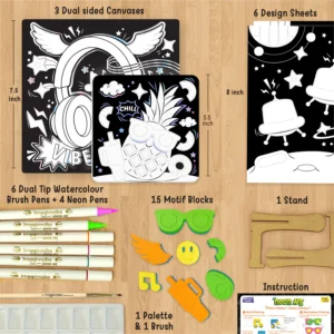 Imagimake DIY Neon Art Kit Painting & Coloring Kit with Neon Brush Pens & Stamps Mess Free Art & Craft kit Ages 8+