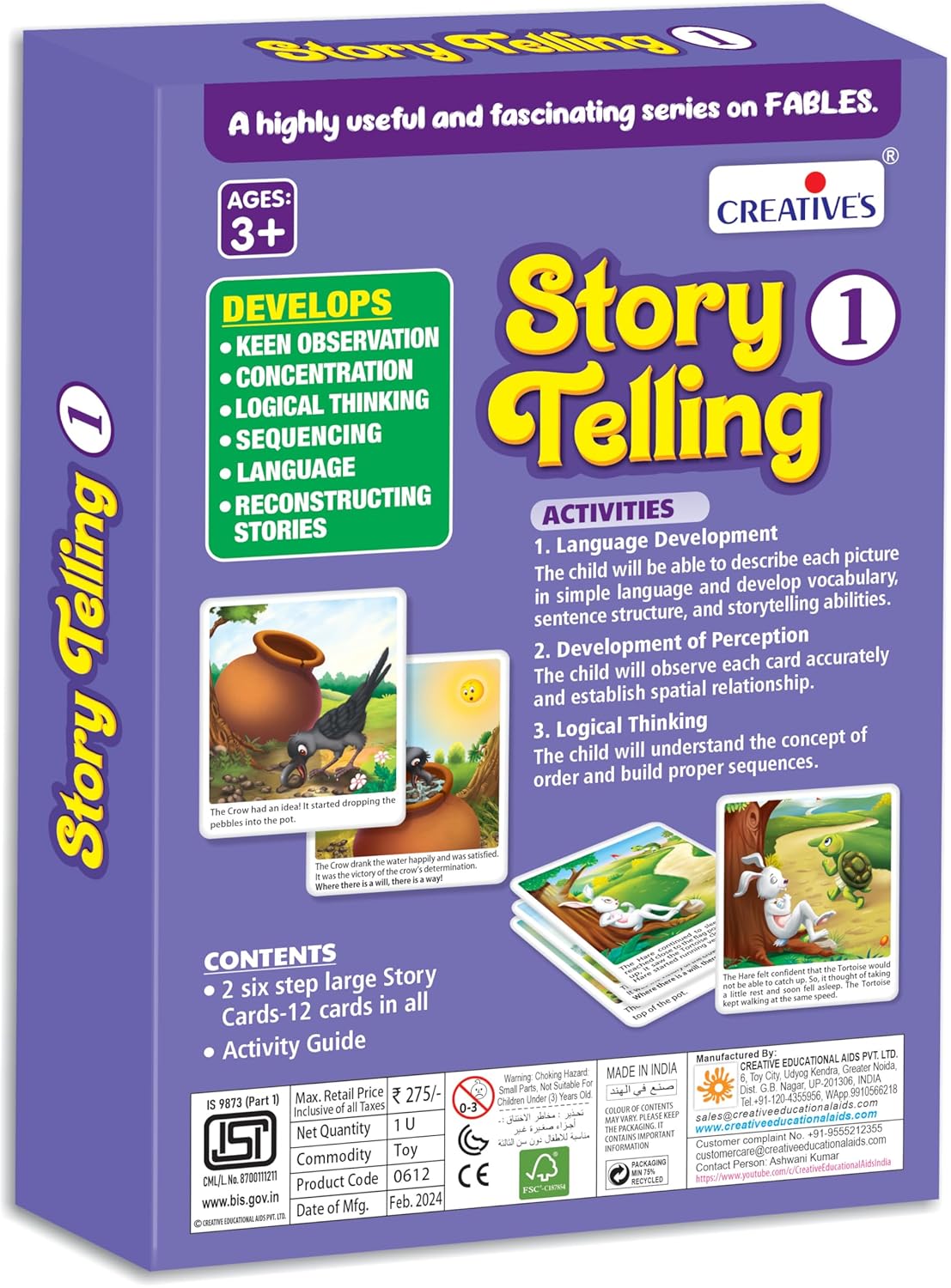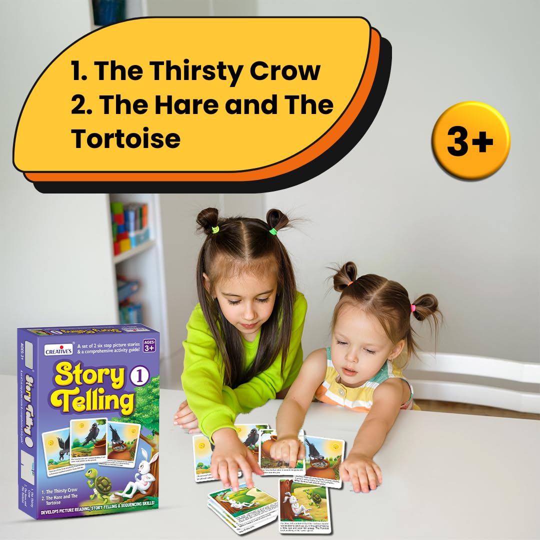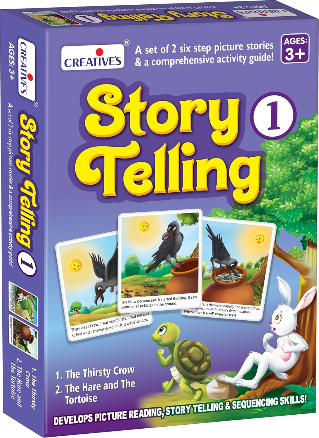 - ✔️【 PARENTS SPEND GOOD TIME WITH CHILD 】:-Creative’s Story Telling Part- 1 It will improve his/her pre-reading or communication skills. Parents or some elder may help them by reading each story in sequence written on each card. Included fables are – The Thirsty Crow & The Hare and The Tortoise.