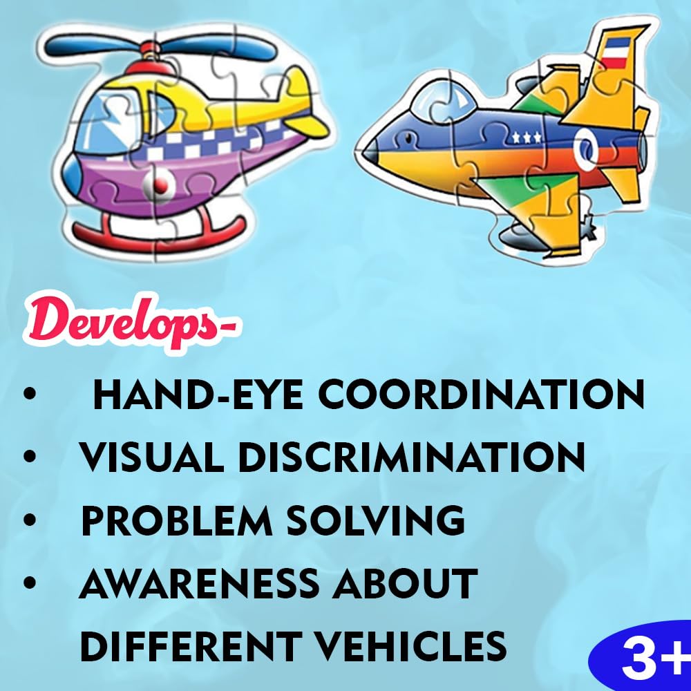 - ✔️【Premium Materials】:- The puzzle are made from durable and safe cardboard. This is cute puzzle is smooth Moderate size and suitable for small hands. Beautiful Ait Transport printing and long-lasting. The round edges of the cardboard and large jigsaw pieces prevent any unwanted accidents.