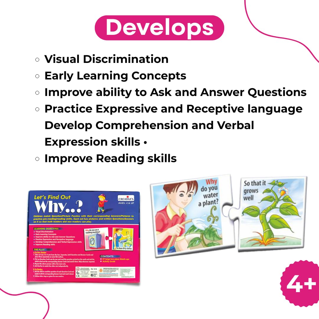 - Builds Logical Thinking: Helps young minds understand cause and effect through questions like “Why do you water a plant?” with answers like “So it grows well.”