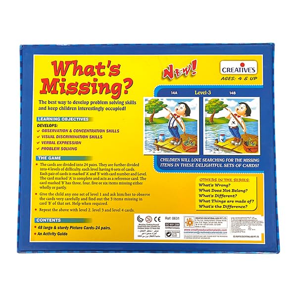 - SAFTEY OF CHILDREN:-Creative’s products confirm to BIS Safety Standards (IS 9873 –Part 1) for Toys and are ISI Marked. Also confirm to EN 71 Part 1, 2 & 3 European Safety Standards for toys. Safety is our top priority!