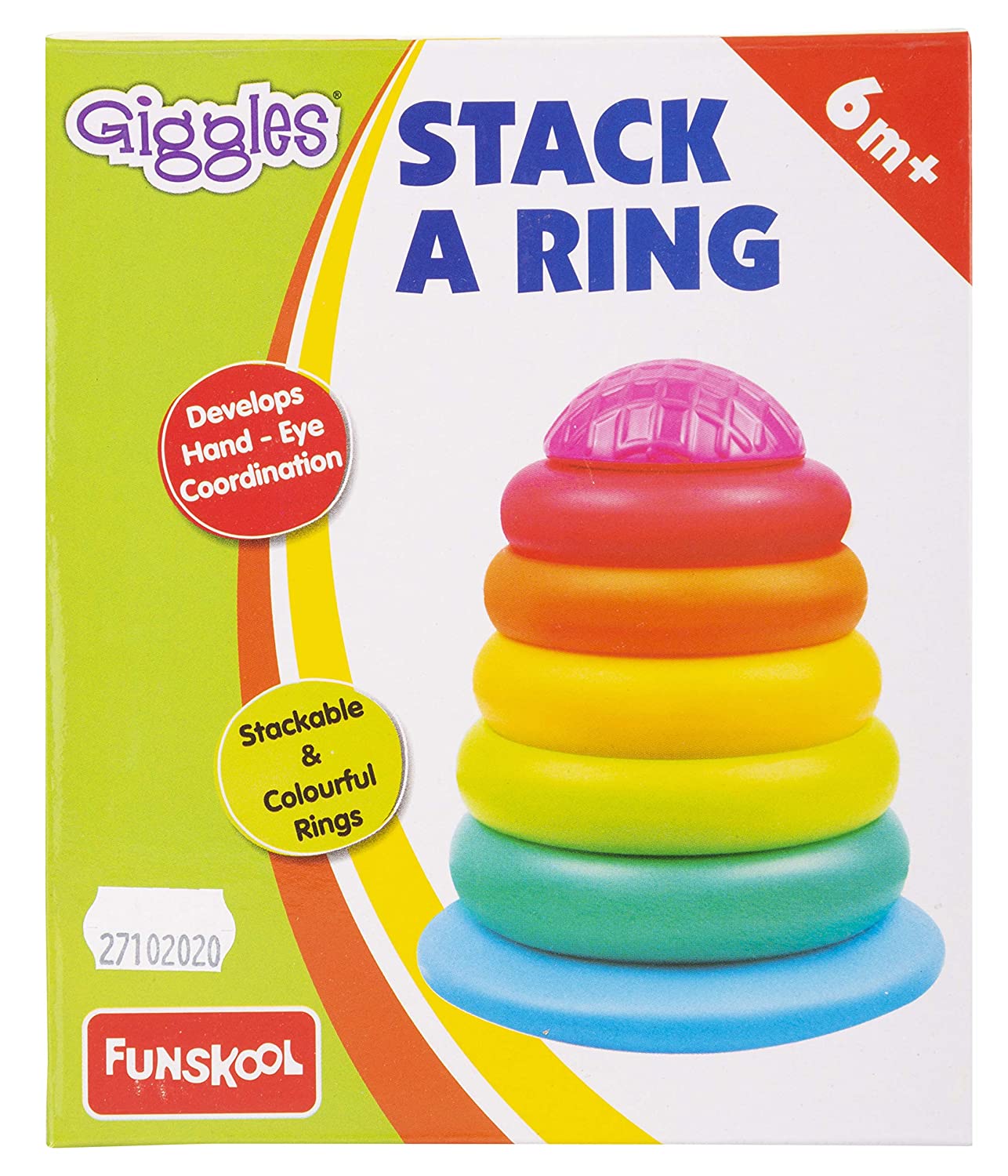 Let the little architect unfold his skills before you as you bring home this Funskool Stack a Ring for him or her. The Stack a Ring toy in bright colours can be an excellent way to keep your child engaged in hours of creative fun indoors. The fun-filled game can be a great way to keep the active kids busy for hours of play fun. Available in different proportionate sizes, the stacking rings in multiple colours can be arranged to build personalised creations. This toy from Funskool is designed for babies of 6 months and above. The rings can be easily stacked in two different ways, either in a pyramid style or just in an inverse pyramid style. The red dome that comes along with the set can be placed on the top like a cherry on a cake. Children can also be taught to identify the colours with the help of these brightly painted rings, as the popping colours can stimulate visual development. Arranging the rings in order according to size can develop the cognitive skills of your little one and help in developing his or her motor skills. Besides, encouraging the creative skills in the kid, the stacking rings can also help in boosting the logical thinking in the children as they learn to arrange them according to size or colour etc. Made from quality material and painted with safe inks, this Stack a Ring toy has 5 separate rings and can be a harmless option for your little one at home.