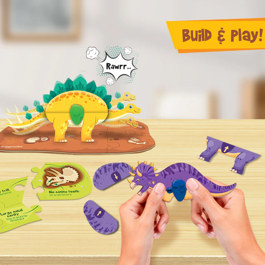 - INTERACTIVE PLAY & LEARNING: Attach the joints, add the tail piece, insert the leg joints, align, fix the body, and solve the fossil puzzle. Pull the dino’s tail to make it roar, offering interactive fun and learning for kids.