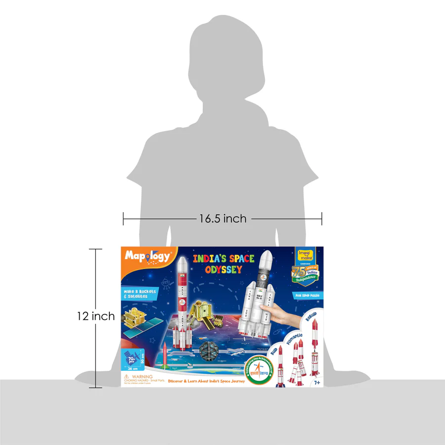 - DUAL SIDED PUZZLE: The activity set also includes a dual sided puzzle – one side represents space orbits while the other side of the puzzle represents fun facts like the fact that PSLV rocket created a World Record of putting 104 satellites on a single mission