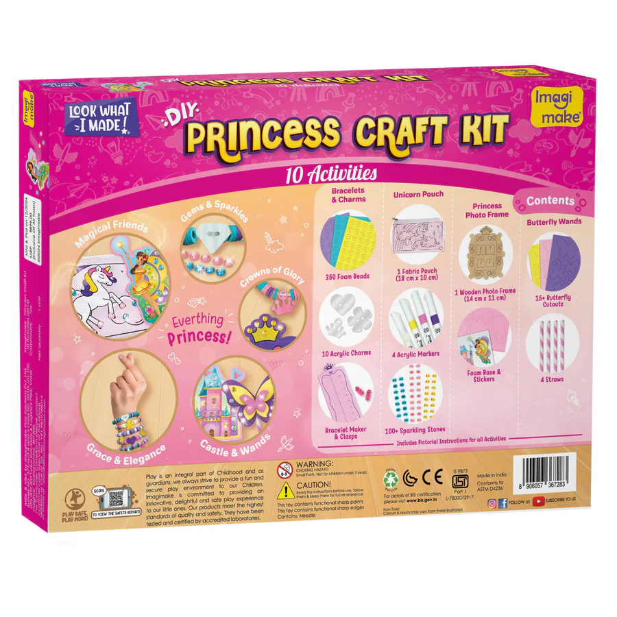 Imagimake Princess Craft Kit DIY Flat Bead Bracelets, Unicorn Pouch, Butterfly Wands & Photo Frame Ages 5+