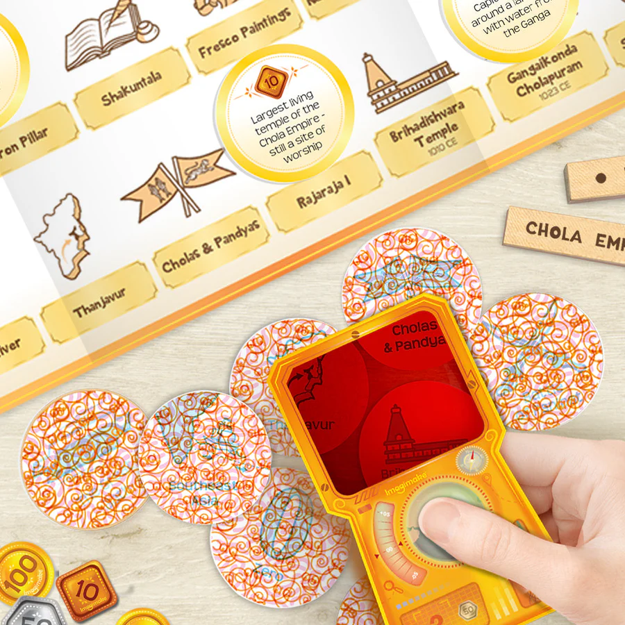 - INNOVATIVE GAMEPLAY WITH DISCOVERY LENS – Lay out the dual-sided game boards displaying 8 historical era. Players use special lenses, called “Discovery Lens,” to uncover hidden artefacts on squiggle tokens, making the game more fun and engaging.