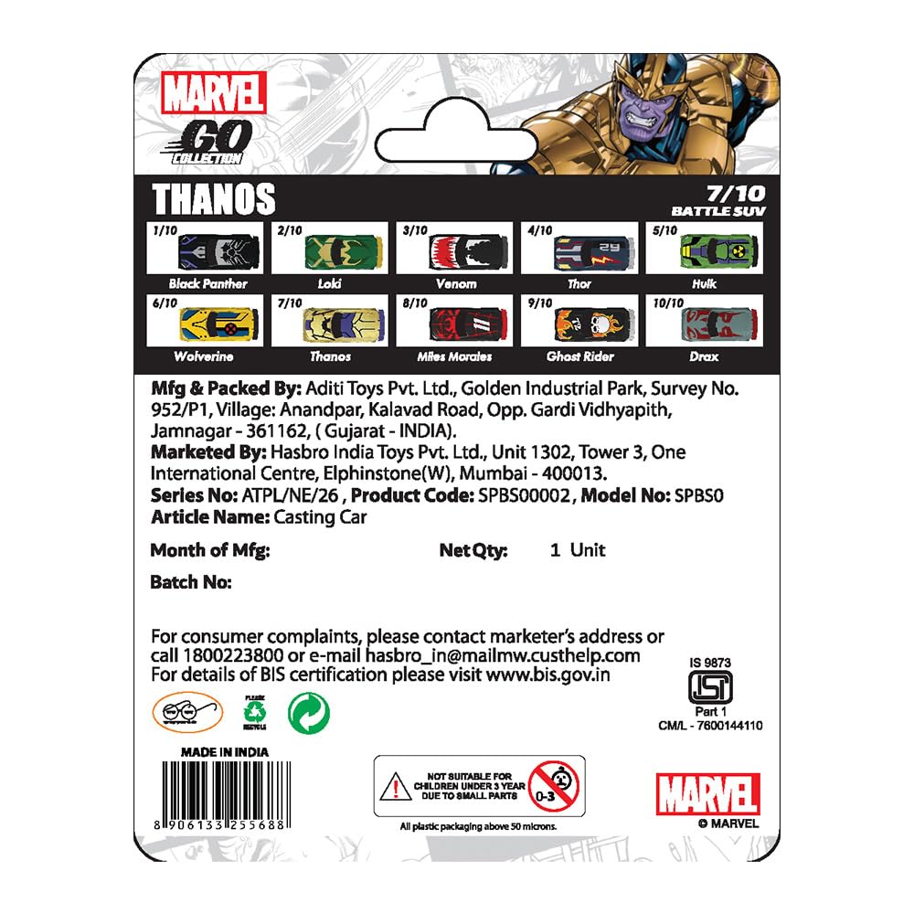 Marvel Thanos 7 Diecast Battle SUV Metal Toy Car for Kids 1:64 Diecast Toy Car Go Collection Superhero Themed Metal Toy Cars Ages 3+